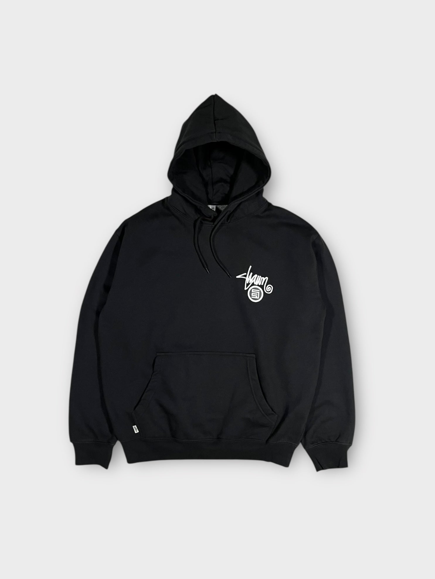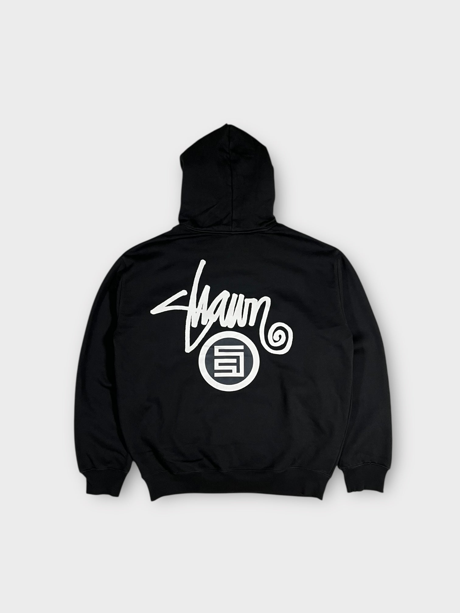 Brand new black, drawstring hoodie from S Double’s latest season’s drop. Features ribbed trims, kangaroo pocket and dropped shoulders. Finished with a brushed fleece interior.